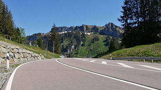 Der unermüdbare Toni fuhr die Tour bereits, so kam die Tour bei mir natürlich auch auf die To-Do-Liste. Bei gutem Wetterbericht spontaner Entschluß. In Langenwang/Fischen (760 m) gehts um 9.00 Uhr los nach 300 km Anreise und Frühstück aus dem Kofferraum. In Tiefenbach beginnt die Steigung zum Rohrmoossattel (1120 m). Durch Almgelände unter dem Ifen führt das Asphaltsträßchen hinauf und auf der anderen Seite runter in Richtung Sibratsgfäll (930 m). Unerwartet wartet dort erst mal eine Steigung auf einen Höhenrücken ("Sausteig") und eine Abfahrt über 150 Hm zur Einmündung in die Straße nach Balderschwang. Nicht steil gehts weiter, aber bei Affenhitze. Nirgendwo Schatten. Endlich Balderschwang (1040 m). Durst wie selten. Vor dem Pass muss ich unbedingt noch etwas trinken, aber nirgendwo ist was Flüssiges erhältlich. Schließlich, ziemlich am Ortsende, sieht es danach aus. Um an meinen Rucksack mit dem Geldbeutel zu kommen setz ich mich neben das Rad. Länger rührt sich nichts, aber irgendwann kommt doch eine Bedienung, der es aber offenbar spanisch vorkommt, dass da einer vor dem Eingang am Boden sitzt und irgendwelche Zeichen gibt. Als sie das Handradl sieht ist alles klar und sie bringt zwei Flaschen eisgekühltes Limo. Da schaut die Welt gleich wieder anders aus. Noch 400 Höhenmeter. In abwechselnder Steigung mit Passagen bis 16% gehts hinauf, die Hitze ist gnadenlos. Endlich oben. Auf der anderen Seite gehts nur noch runter. Gott sei Dank.